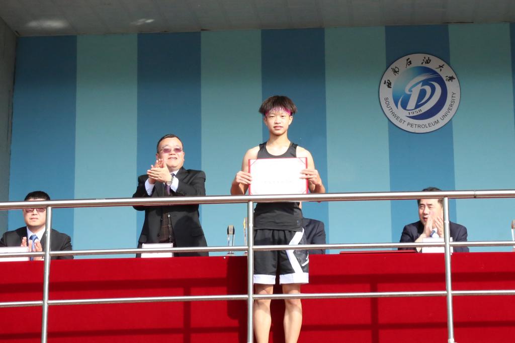 榮獲“學生最佳男運動員”稱號學生領獎場景