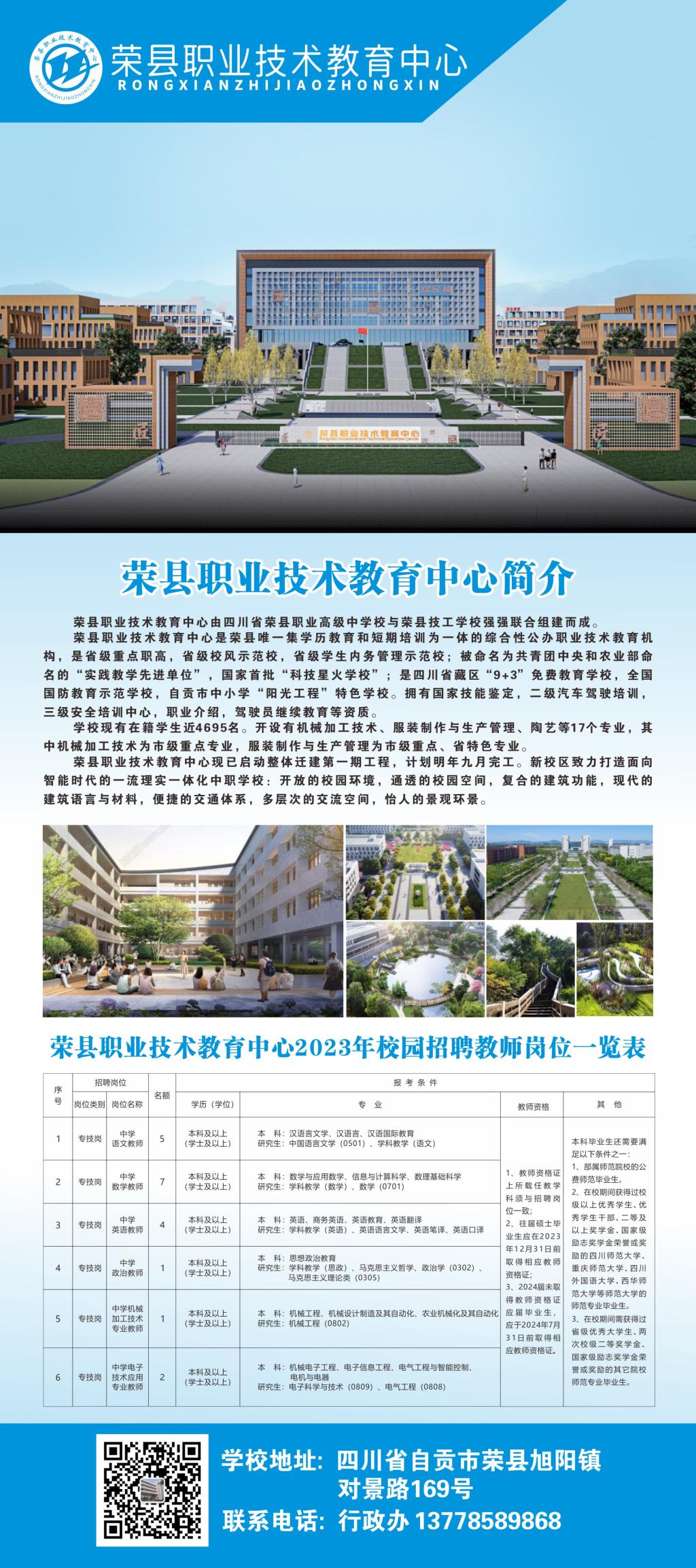 榮縣職教中心是自貢市榮縣唯一的一所公辦職高,本次招聘是帶編招聘,根據榮縣教體局、榮縣編辦、榮縣人社局相關要求,本次入編必須滿足以下條件:應屆畢業生,在2024年7月31日前取得中職教師資格證,獲得校級二等獎學金以上獎勵或校級三好學生、優秀學生、優秀學生干部等榮譽稱號。面試成功當場簽約,明年9月就入編!