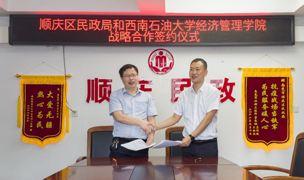 經(jīng)濟(jì)管理學(xué)院與順慶區(qū)民政局舉行校地戰(zhàn)略合作簽約暨揭牌儀式