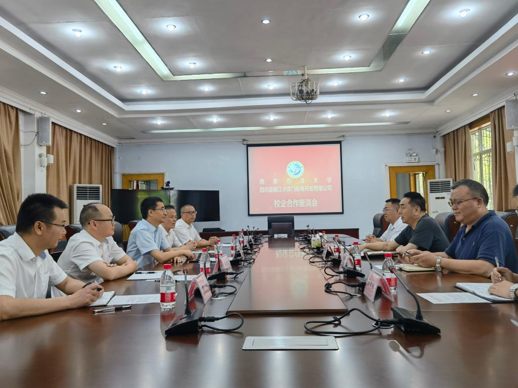 信息學院黨總支副書記(主持工作)張輝耀,信息學院電氣工程與智能控制教研室教師代表,四川嘉陵江小龍門航電開發有限公司有關部門負責人參加座談。(湯夢陽)
