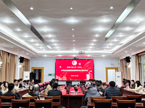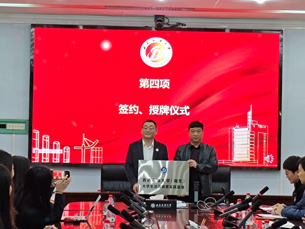 為構建完善的校園法治教育體系,推動大學生法治宣傳教育常態化長效化,進一步提升普法的針對性與實效性,11月18日上午,南充校區大學生法治教育實踐基地成立簽約儀式在通訊樓會議室舉行。南充校區黨委副書記郝江嶺,學生發展部(團委)副部長秦明旺,四川綢都律師事務所高級合伙人、執行主任向杰峰出席簽約儀式。學生發展部(團委)學生教育管理中心主任周欣欣主持儀式。