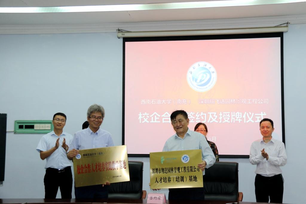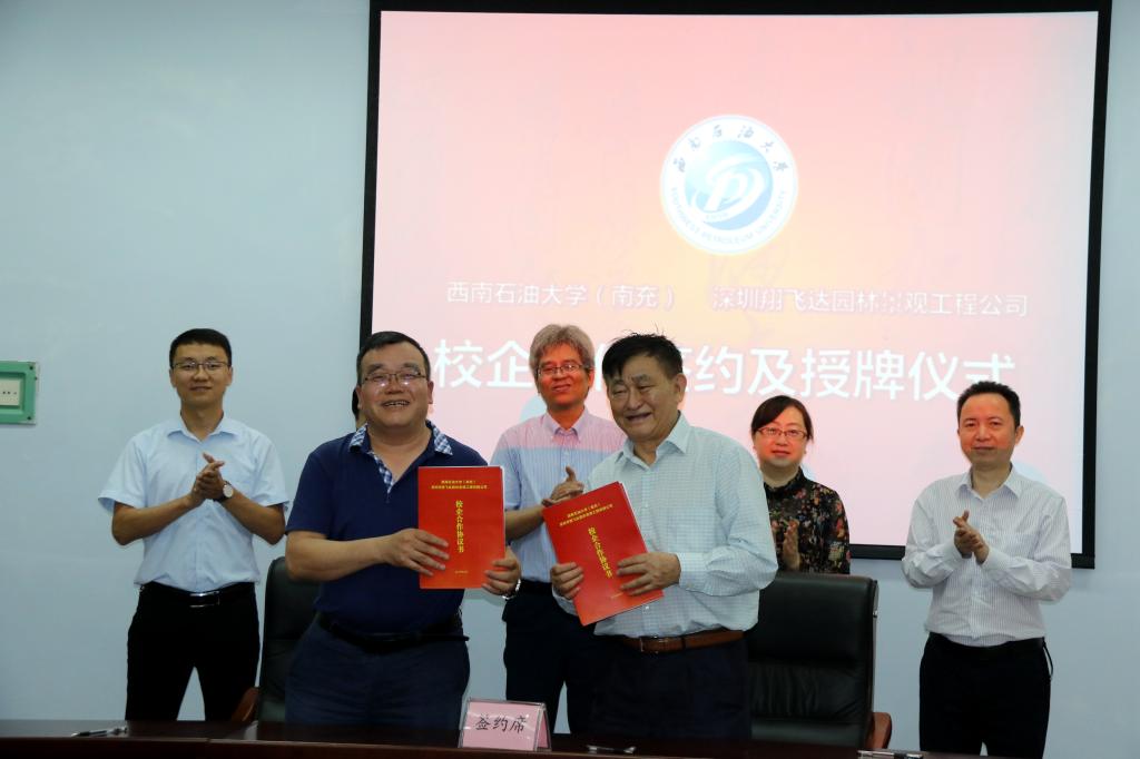 諶海云代表南充校區(qū)與深圳市翔飛達園林景觀工程有限公司簽訂了校企合作協(xié)議。諶貴輝代表工程學院與深圳市翔飛達園林景觀工程有限公司簽訂了“翔飛達”獎、助學金捐助協(xié)議。