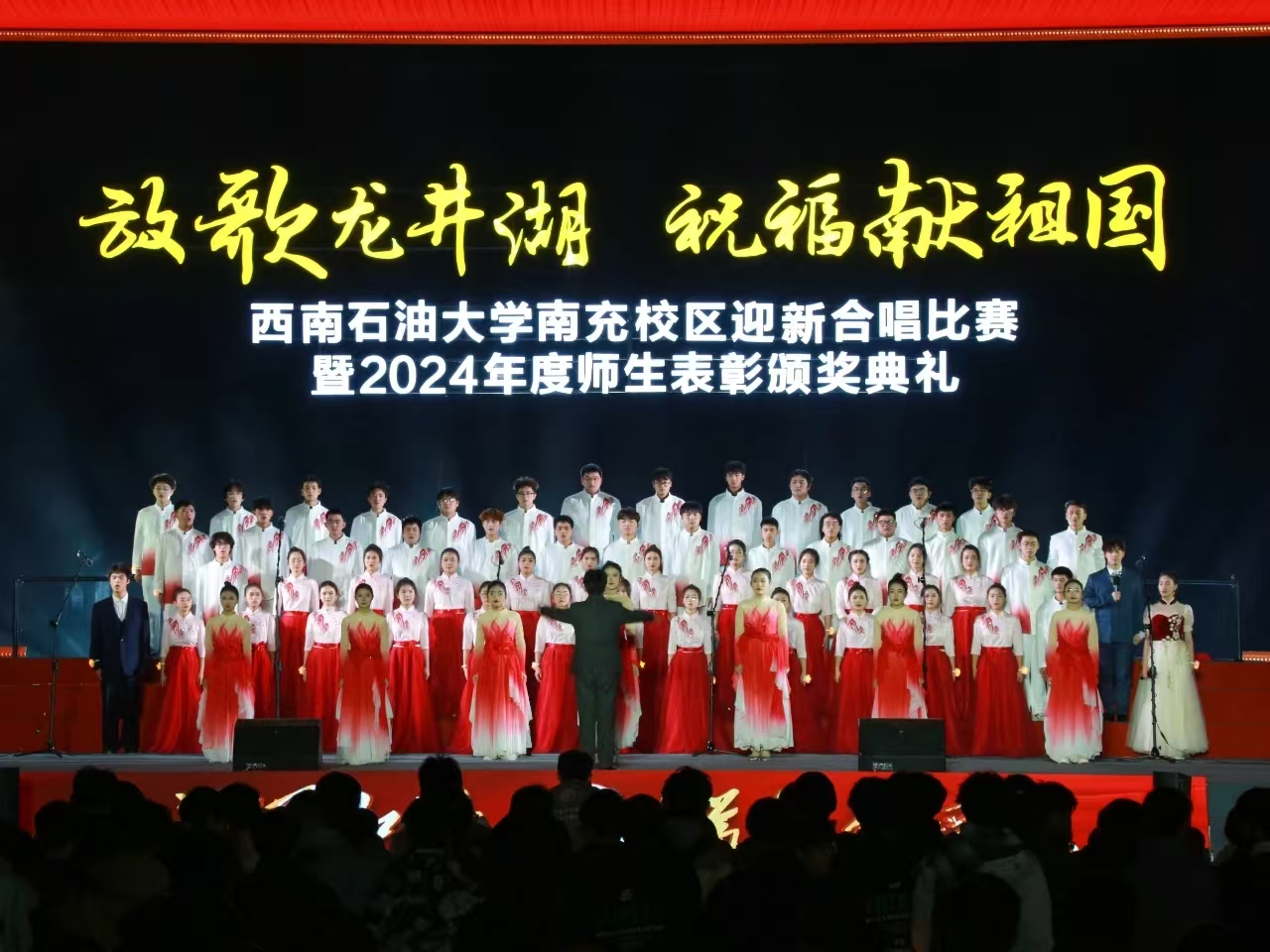 飛翔旋律傳千里,祖國頌歌響四方。12月15日晚,南充校區在田徑運動場隆重舉行“放歌龍井湖 祝福獻祖國”迎新合唱比賽暨2024年度師生表彰頒獎典禮。