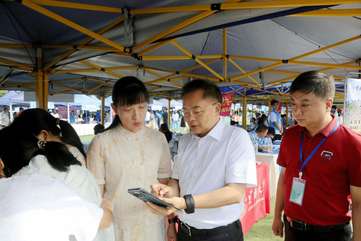 咨詢會現場,南充校區領導、四川省招生考試指導中心、南充市教育考試院有關同志,南充校區相關職能部門和各延伸管理學院負責人到會指導,與參會高校招生老師、考生及家長、學生志愿者進行了交流。