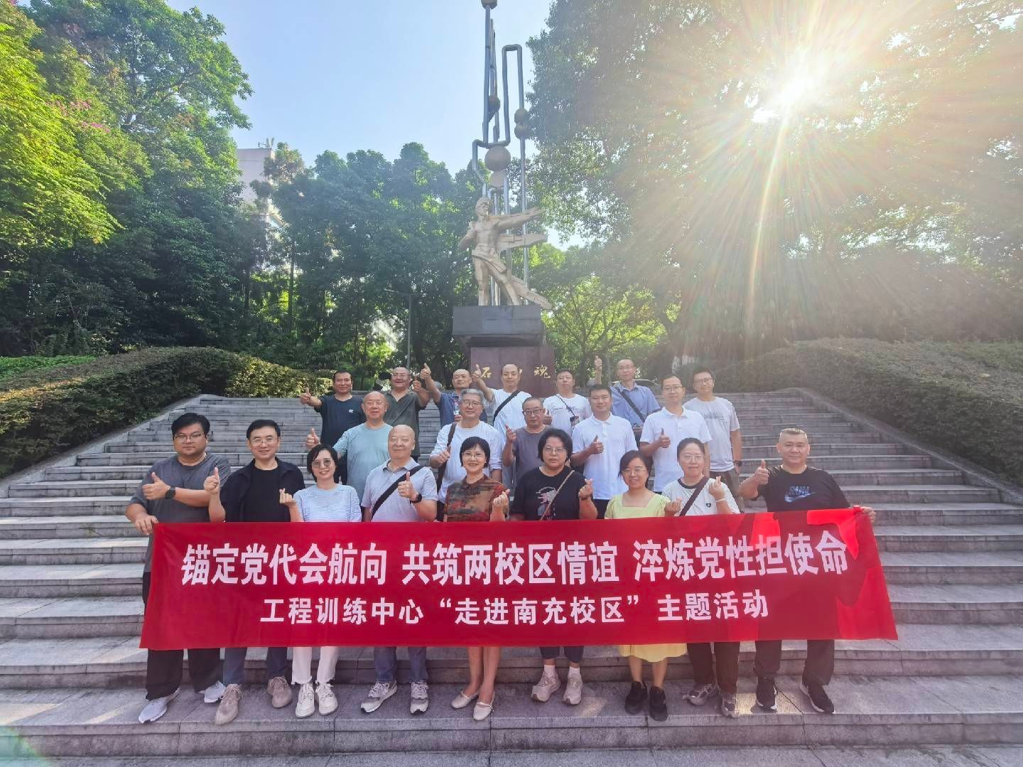為迎接學(xué)校第三次黨代會的勝利召開,進一步淬煉黨性、勇?lián)姑訌妰尚^(qū)間的交流合作,10月9日,學(xué)校工程訓(xùn)練中心黨總支書記游麗、中心主任蔣林率隊到南充校區(qū),開展了“錨定黨代會航向·共筑兩校區(qū)情誼·淬煉黨性擔使命”的主題活動。南充校區(qū)黨委常務(wù)副書記方可、南充校區(qū)副校長諶貴輝與游麗、蔣林一行進行了“黨建+業(yè)務(wù)”主題交流。
