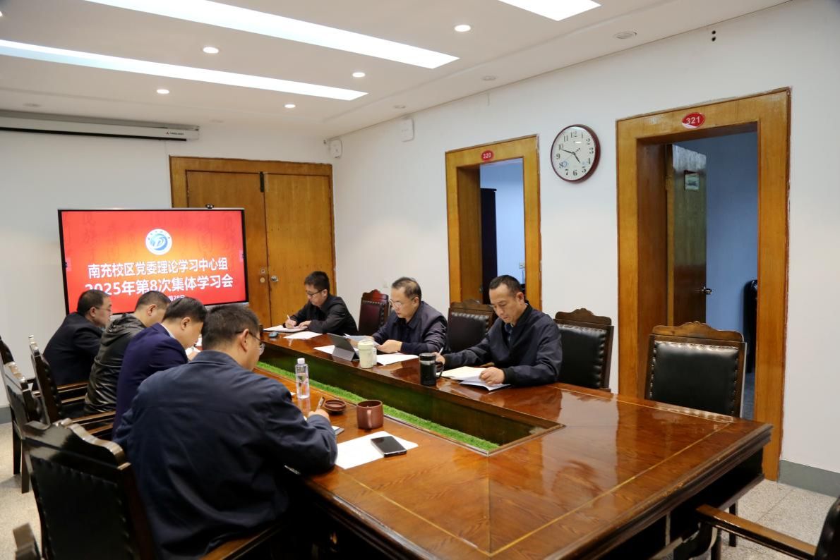 10月28日,南充校區黨委理論學習中心組舉行2025年第8次集體學習會,傳達學習黨的二十屆四中全會精神。南充校區黨委常務副書記方可主持會議并就學習貫徹落實全會精神作安排部署。南充校區黨委副書記、常務副校長覃鴻飛,南充校區黨委副書記郝江嶺,南充校區副校長諶貴輝、劉恒、李平參加學習。