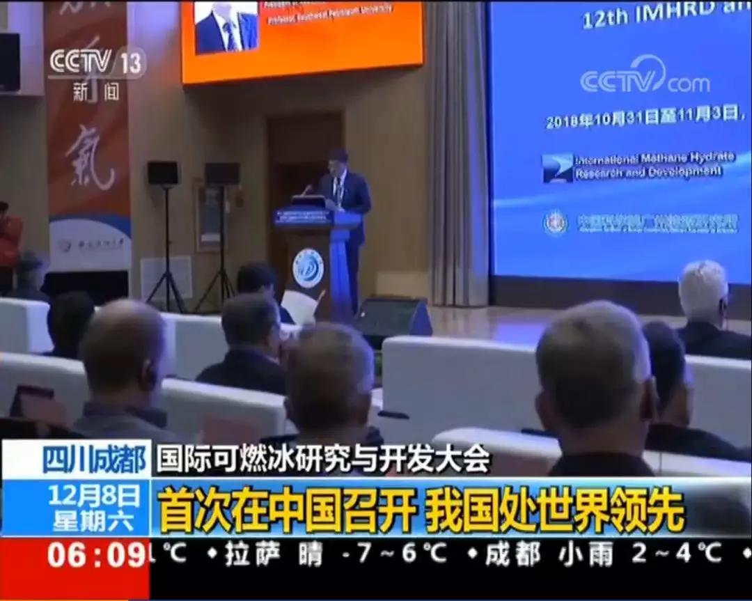 12月8日上午6:09,中央電視臺CCTV-13新聞頻道以《國際可燃冰研究與開發大會首次在中國召開 我國處世界領先》為題,用1分8秒的時長報道了在我校舉行的第十二屆世界天然氣水合物研究與開發大會,以及我校在可燃冰研究方面所取得的成就,這表明我校在天然氣水合物研究與試采領域做出的突出貢獻得到了國際社會的廣泛認可。