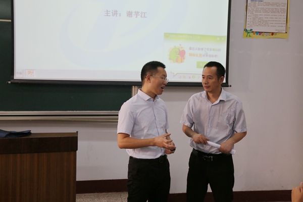 南充校區黨委副書記、紀委書記覃鴻飛與教師交流教學工作