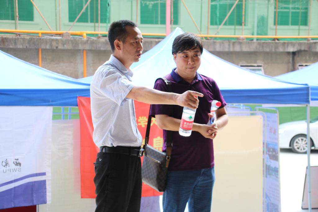 校區領導張光君陪同學校領導趙正文檢查指導迎新工作場景