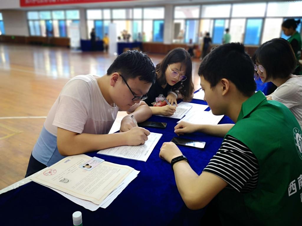 迎新期間,南充校區學生干部、大學生全媒體中心學生記者、學生社團組織等學生志愿者儼然成了新生接待站的一道不可忽視的風景線,他們熱情周到的“一對一”服務總是能得到新生和家長的頻頻稱贊。