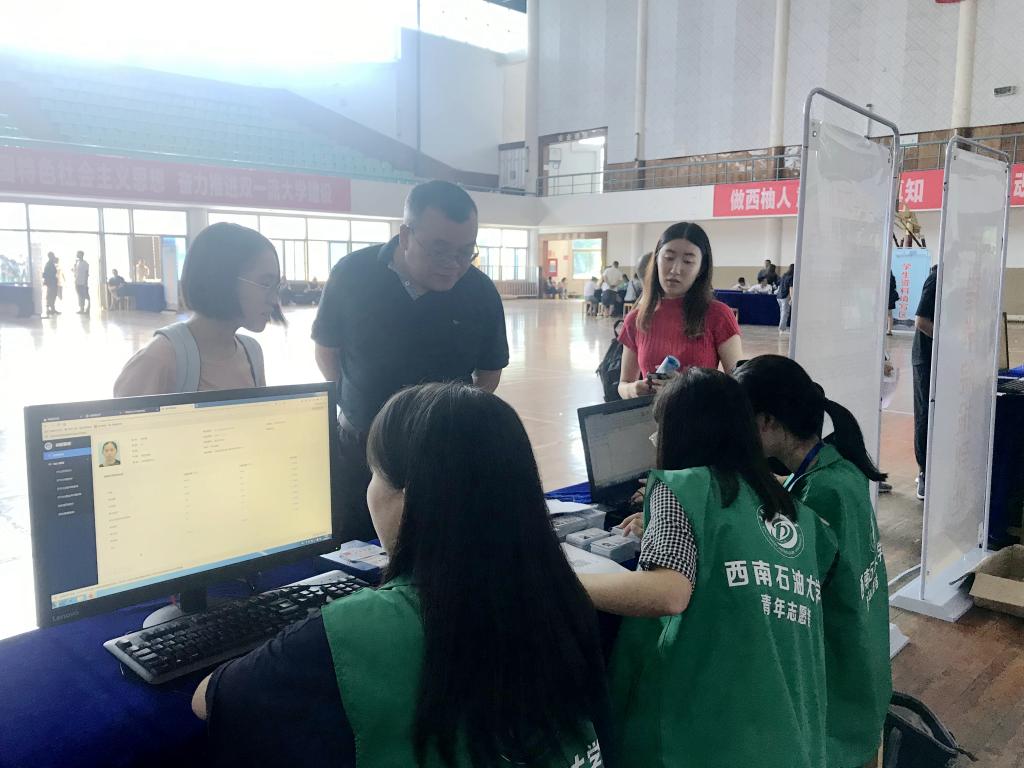 校區在龍井湖觀景平臺上擺放了“WELCOME TO SWPU”主題合影墻。合影墻包含了磕頭機、井架等石油文化元素,并與美麗的龍井湖景色巧妙地結合在一起,吸引了許多新生和家長紛紛前來合影留戀。在體育館門前設置了印有學校Logo、石大精神等內容的巨幅新生簽名留影墻,讓新生留下自己入學時的最美的記憶,受到了新生的歡迎,紛紛在簽名墻上留下屬于自己的印記,在合影墻前拍下“我”與石大的第一張合影,定格下入學時的青春瞬間。體育館報到點,新生和家長正駐足觀看大學生全媒體中心播放的學校宣傳片、校園風景視頻、央視科教頻道采訪校區學子的草莓采摘器專題片,新生及家長紛紛點贊校區的建設發展、辦學實力和人才培養成果。