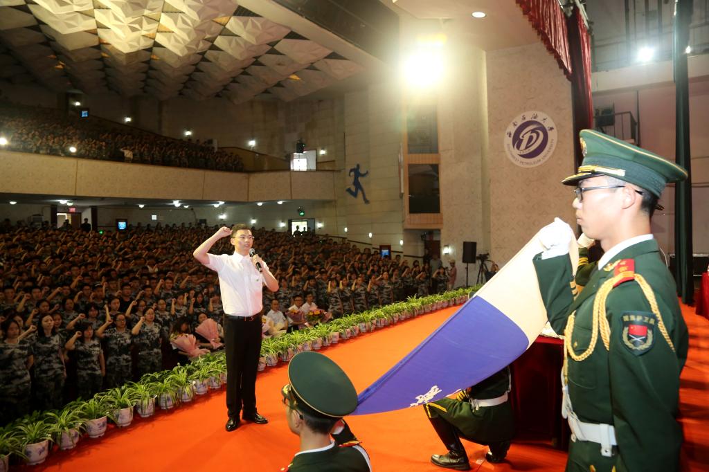 校黨委書記孫一平致辭,并為新生上大學(xué)第一課