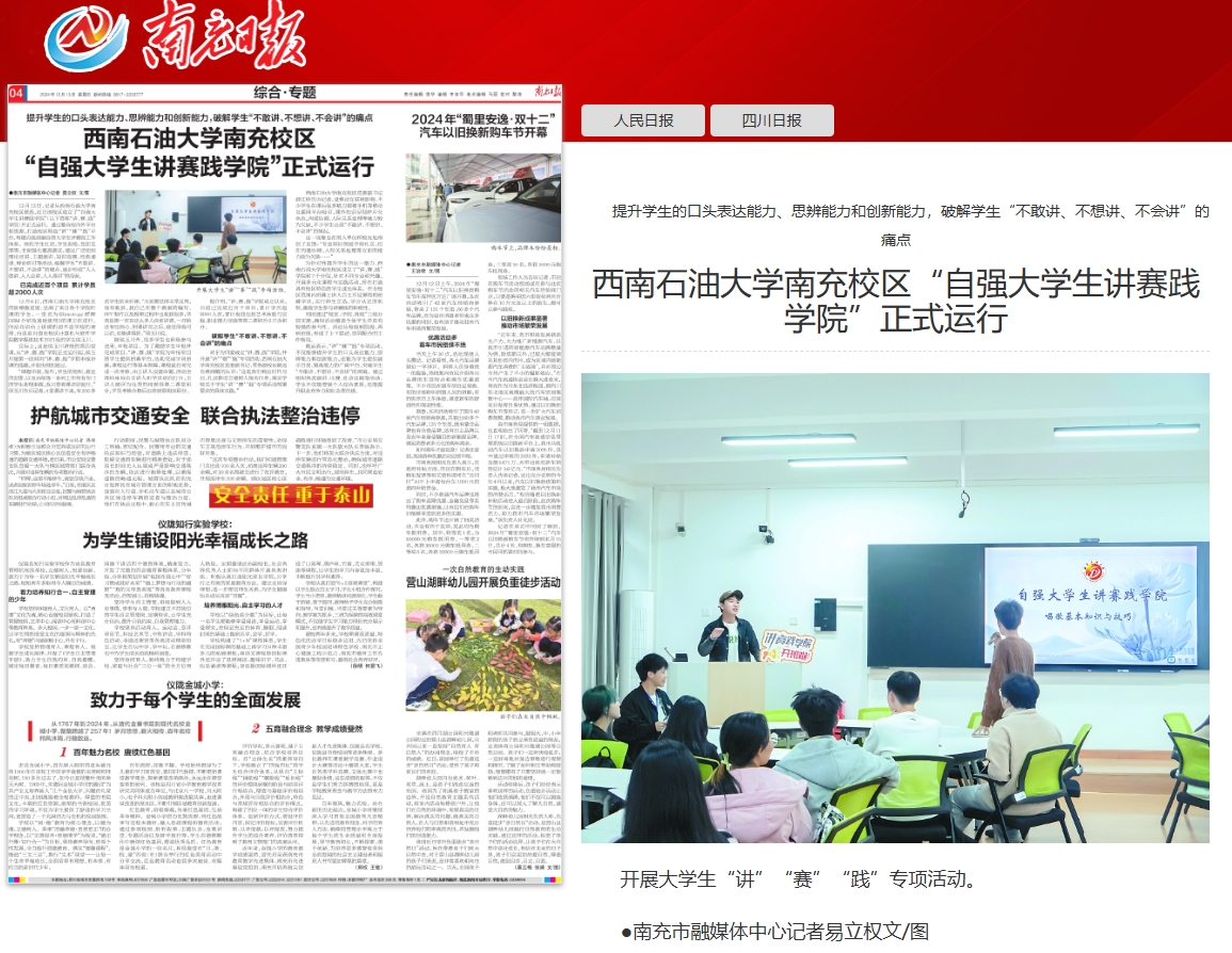 南充日報以《西南石油大學南充校區“自強大學生講賽踐學院”正式運行》為題進行相關報道。
