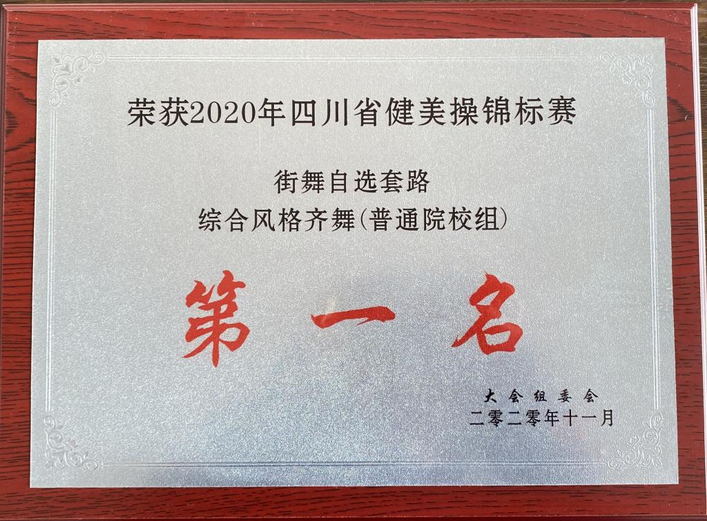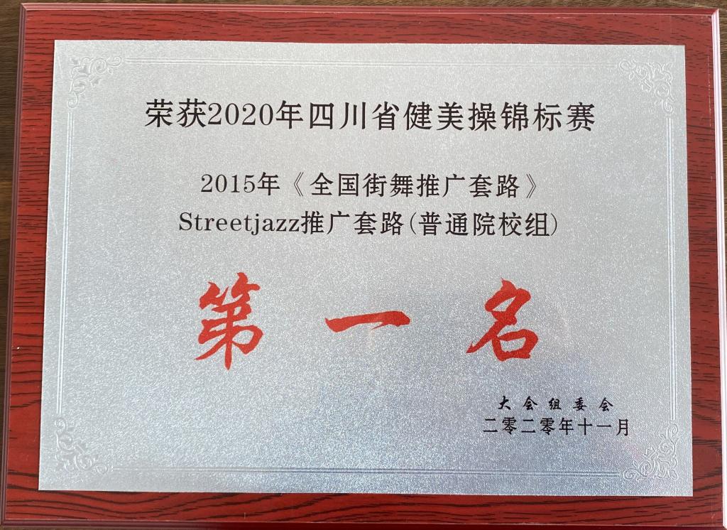 11月13日至15日,2020年四川省健美操錦標賽在成都市舉行。基礎教學部教師牛美惠、楊薇帶領校區(qū)運動舞蹈隊參賽榮獲兩項第一名。參賽節(jié)目《This is me 》榮獲街舞綜合風格齊舞項目第一名,同時street jazz推廣套路(2015)項目獲得爵士規(guī)定組第一名。