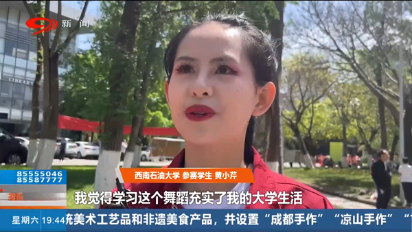 南充校區(qū)運(yùn)動舞蹈隊(duì)學(xué)生接受四川電視臺記者采訪場景