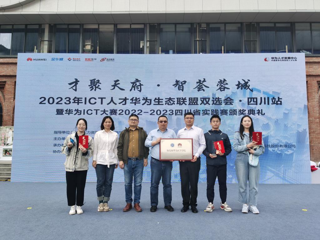 4月22日,2023年ICT人才華為生態聯盟雙選會·四川站暨華為ICT大賽2022-2023四川省實踐賽頒獎典禮在成都舉行,并舉行“領先級華為ICT學院”授牌儀式。計算機科學學院副院長胥林、龔捷,網絡工程教研室主任余一帆和相關專業師生參加了相關活動。