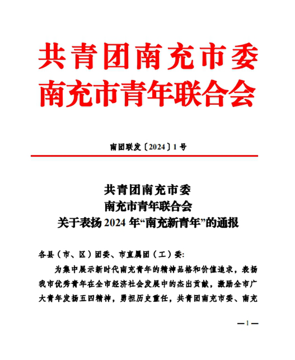 今年,共青團南充市委、南充市青年聯合會授予8名同志2024年“南充新青年”稱號、6個青年集體2024年“南充新青年集體”稱號,旨在集中展示新時代南充青年的精神品格和價值追求,表揚南充市優秀青年在全市經濟社會發展中的杰出貢獻,激勵全市廣大青年發揚五四精神,勇擔歷史重任,營造學習先進、爭當先進、趕超先進的良好氛圍,號召全市各族青年青春心向黨,建功新時代,不斷創造無愧于時代和青春的新業績,為建設“成渝第二城”,爭創川東北經濟副中心貢獻青春力量