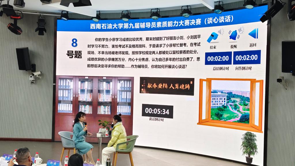 最終,南充校區(qū)輔導(dǎo)員薛靜以案例研討和談心談話均為第一名的好成績(jī)榮獲比賽一等獎(jiǎng)。