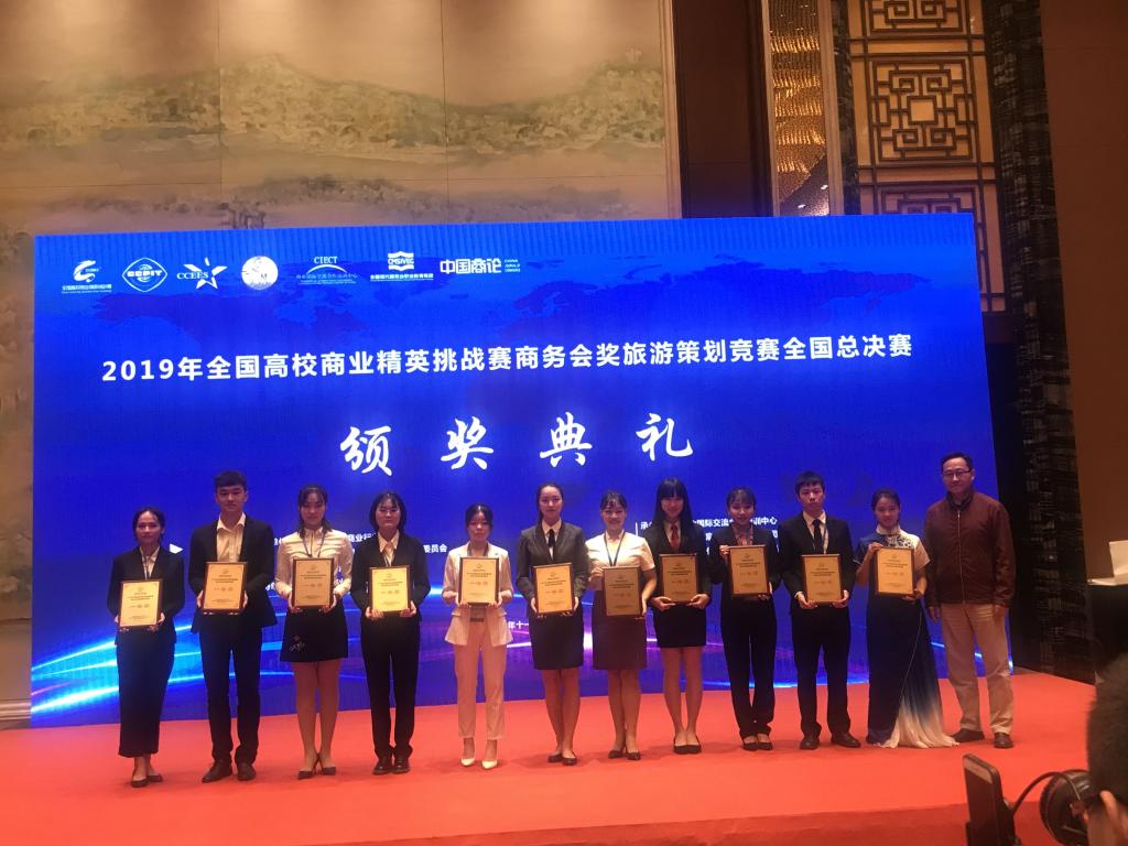 11月2日,全國高校商業精英挑戰賽商務會獎旅游策劃競賽全國總決賽在安徽蚌埠圓滿結束。財經學院教師肖怡然、張艷萍、方琢鈞、彭雙四位老師指導酒店管理專業2017級、2018級學子組成 “明月寶璐隊”(李思藝、譚琦、王玲、李治紅)、“小火車隊”(鐘小薇、韓子軒、曾炎)、“天線寶寶隊”(姚美旭、黃婷婷、何容華、張艷),代表我校參賽。最終,榮獲一等獎兩項、二等獎一項,我校榮獲最佳院校組織獎。同時,在同步舉行的實物展洽賽環節,財經學院學子還榮獲一等獎兩項、二等獎一項(單獨設賽區和獨立獎項)。
