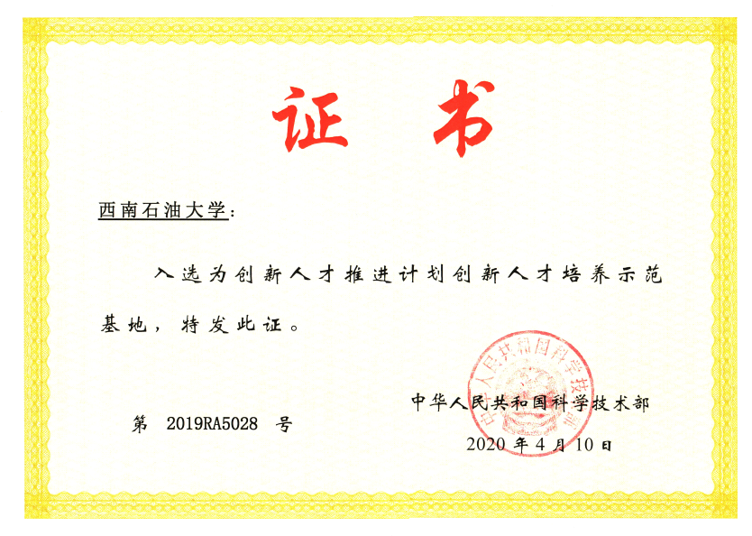 國家創(chuàng)新人才培養(yǎng)示范基地入選證書
