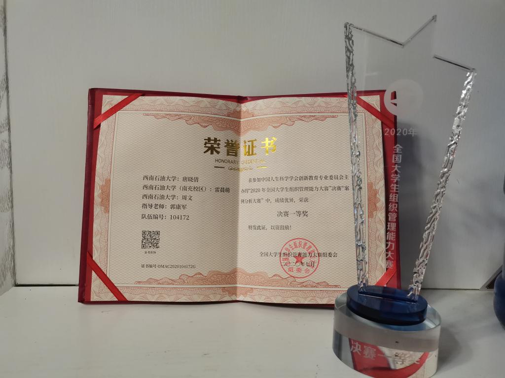 【喜報】信息學院學子榮獲2020年全國大學生組織管理能力大賽全國總決賽一等獎