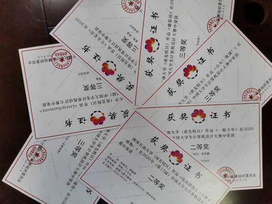 由信息學院胥林、王丹東老師指導曾雨肖、唐曉倩同學參加了微課與教學輔助類的比賽,王婧、王坤老師指導李博源、岑宇峰、陽俊鵬、朱代、曾雨肖同學參加了數媒動漫與微電影(專業組)類的比賽,經過國賽初評、復評、在線答辯和評審專家點評環節,均榮獲二等獎。