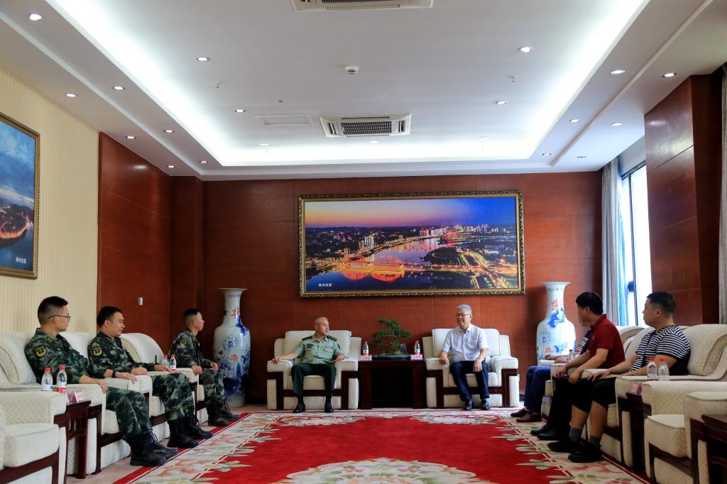 在武警南充支隊會議室,王勝軍代表校區師生向全體官兵致以節日祝愿和崇高敬意,感謝部隊官兵一直以來大力支持和幫助我校開展學生軍訓、國防教育、愛國主義教育等工作。他表示,每年軍訓期間,部隊官兵優良的作風讓石大師生深受感染,雙方情誼深厚,希望雙方加強聯系,密切合作。王勝軍還介紹了南充校區建設發展情況,重點介紹了南充校區在人才培養、學科建設、辦學條件建設等方面取得的新成績和服務地方經濟社會發展取得的新成效。他說,西南石油大學將一如既往地推進國防動員和“雙擁”工作,積極發揮科技、人才和平臺等方面的優勢,為我國國防事業發展和軍隊現代化建設貢獻西南石油大學的力量。