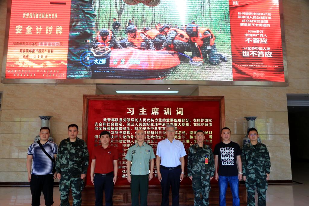 7月30日上午,在中國人民解放軍第94個建軍節來臨之際,南充校區副校長王勝軍一行前往武警南充支隊看望慰問了部隊官兵,與部隊首長進行了座談交流。學生工作部(團委)部長郝江嶺,保衛部副部長李文參加慰問。