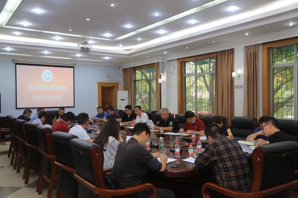 8月27日下午,南充校區召開2021年迎新工作暨軍訓工作協調會。南充校區黨委副書記、紀委書記覃鴻飛,南充校區副校長王勝軍,校區各職能部門和直屬單位負責人、各學院黨總支副書記、學工隊伍參加會議。會議由覃鴻飛主持。