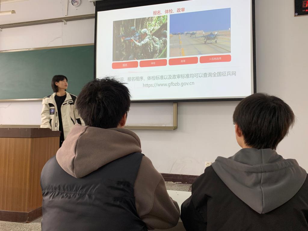 經(jīng)濟(jì)管理學(xué)院學(xué)生辦公室(團(tuán)總支)主任楊智光說,舉辦此次征兵動(dòng)員與軍旅生活分享會(huì),能讓學(xué)院更多同學(xué)立志參軍的同學(xué)進(jìn)一步了解到大學(xué)生應(yīng)征入伍的重要意義,激發(fā)學(xué)生有志青年積極投身國防事業(yè)、獻(xiàn)身國防事業(yè)的熱情。今后,學(xué)院將繼續(xù)強(qiáng)化宣傳、細(xì)化服務(wù)、重點(diǎn)突破,推動(dòng)應(yīng)征入伍工作走深走實(shí)。(圖/文 胡朝偉 宿帥杰)