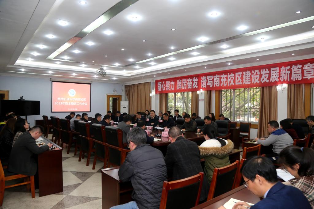 3月28日,南充校區(qū)召開2023年安全穩(wěn)定工作會,校長助理、南充校區(qū)黨委常務(wù)副書記張光君出席會議并與各安全穩(wěn)定責任單位簽訂《2023年度安全穩(wěn)定責任書》,南充校區(qū)副校長覃鴻飛主持會議。