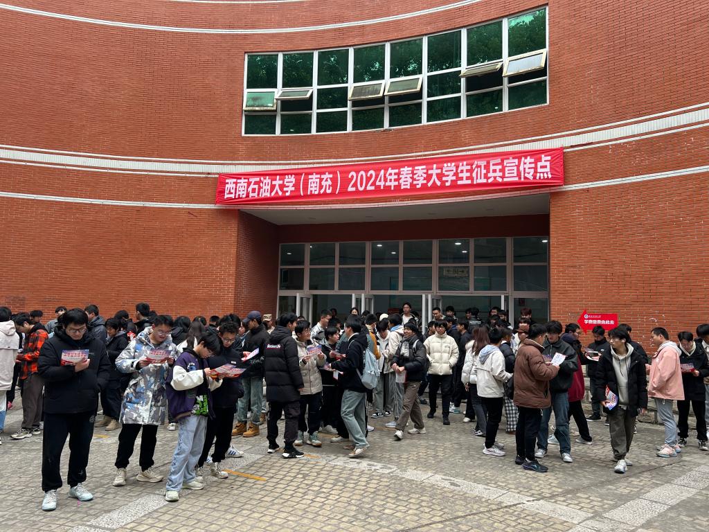 為充分調動大學生參軍入伍的積極性,12月28日下午,安全與后勤保障部國防教育科聯合順慶區人民武裝部在第四教學樓前開展了2024年春季征兵宣傳“進校園”暨國防教育活動。