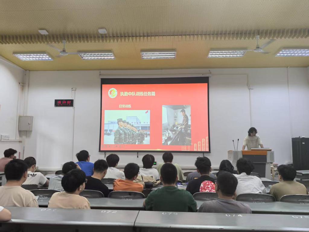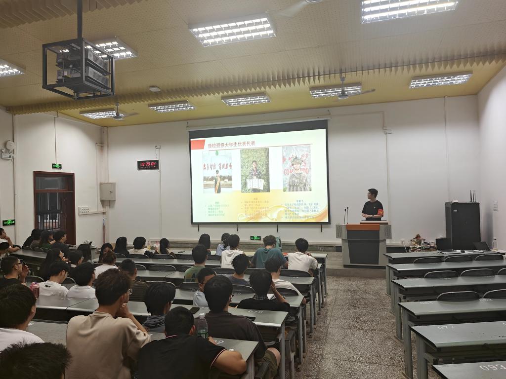 5月8日,學院邀請校區西柚老兵隊成員開展“軍營零距離”經驗分享會。曾服役于中國人民武裝警察部隊湖南總隊某支隊的2022級學生歐陽安南,通過PPT展示日常訓練、實戰演練場景,并坦言:“軍營教會我‘服務人民’的信念,這段經歷讓我從迷茫少年成長為有擔當的戰士!”真實生動的軍旅故事引發強烈共鳴,進一步激發了與會學生參軍報國的意向。