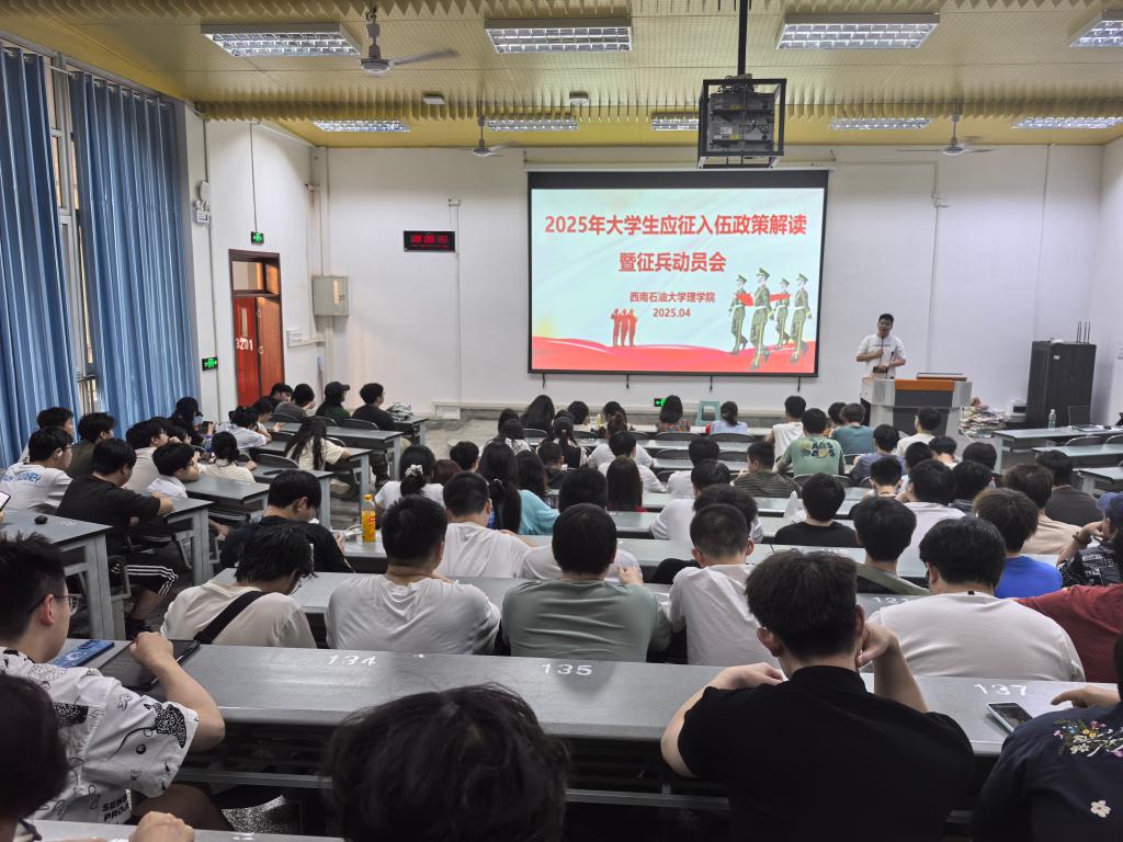 為積極響應國家強軍號召,激發青年學子攜筆從戎、建功軍營的家國情懷,4月24日至5月13日,理學院以“五個一”工程為抓手,全面推進2025屆畢業生征兵宣傳動員工作,通過思想引領、政策賦能、榜樣示范、精準服務,引導學子將青春熱血融入國防事業。