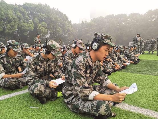 盛年不重來,一日難在晨,及時當勉勵,歲月不待人。每天早晨7:30-8:15是他們的聽力時間,新生們齊聚在綠茵場上練習英語聽力。當記者們問道關于大學的學習他們有什么計劃時,胡樂同學對我們說:“雖然現在在軍訓,但我絲毫也不會松懈學習,我要提前準備,爭取一次性通過英語四級考試。”王馨也告訴我們:“‘業精于勤荒于嬉,行成于思毀于隨’,我要時時刻刻以一個軍人的身份來要求自己,做到訓練場上不喊苦,學習時間不喊累。”