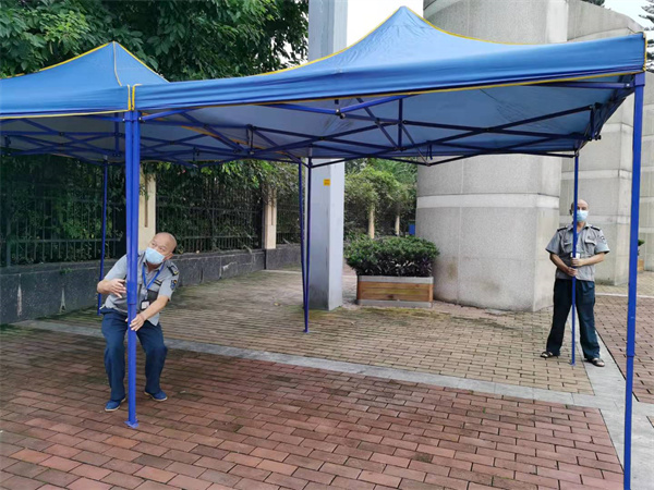為進(jìn)一步落實(shí)校區(qū)迎新工作的相關(guān)部署,保衛(wèi)部提前召開會(huì)議,統(tǒng)一思想,提高認(rèn)識(shí),制定預(yù)案,提前調(diào)試防控技術(shù)設(shè)備和人員安排。迎新當(dāng)天,保衛(wèi)部工作人員嚴(yán)格按照操作流程,提示同學(xué)們?nèi)胄r(shí)換口罩,手消毒,通道內(nèi)保持距離有序入校。為解決新生家長(zhǎng)車輛不能進(jìn)入校園學(xué)生攜帶大件行李搬運(yùn)困難的現(xiàn)象,保衛(wèi)部工作人員頂高溫、冒大雨,為學(xué)生搬運(yùn)行李。同時(shí)還積極協(xié)調(diào)轄區(qū)交警、派出所,加強(qiáng)校門周邊車輛管理,疏導(dǎo)交通,校園內(nèi)加強(qiáng)巡邏,做好校園治安防控及突發(fā)事件的處置工作。