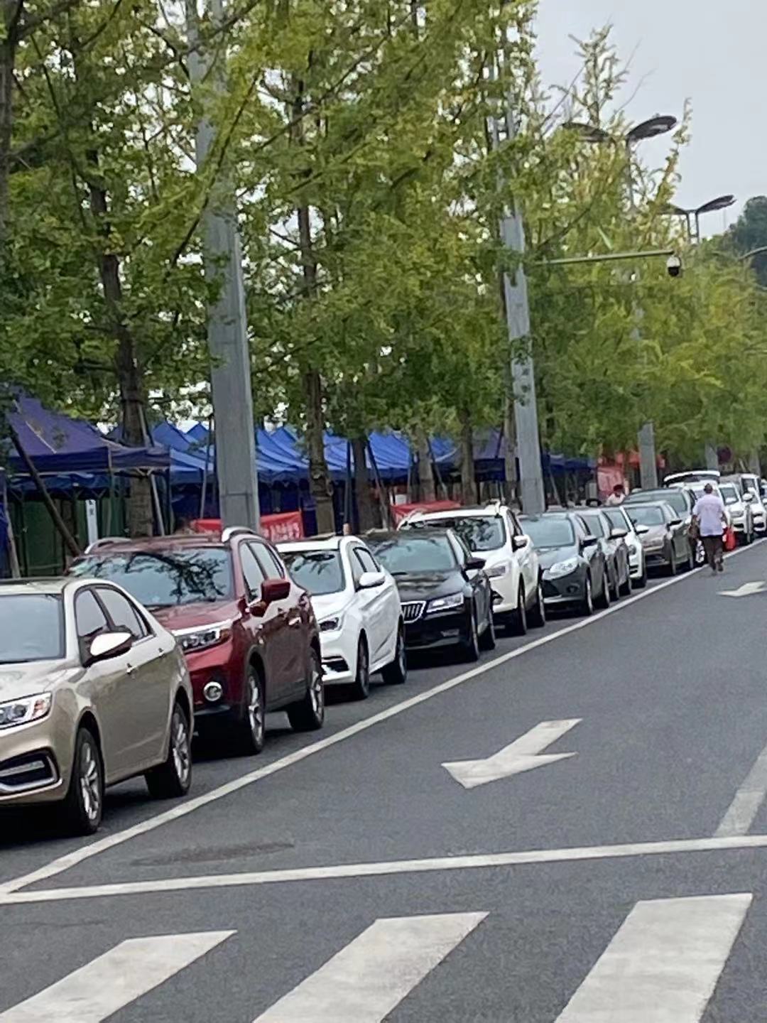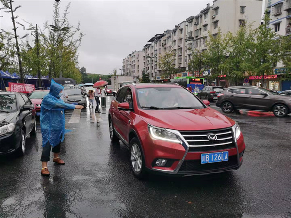 保衛(wèi)部職工指揮新生家長(zhǎng)車輛有序在臨停區(qū)停放