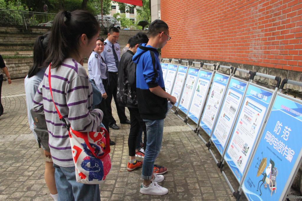講座結束后,同學們參觀了“防范網絡電信詐騙”的宣傳展。