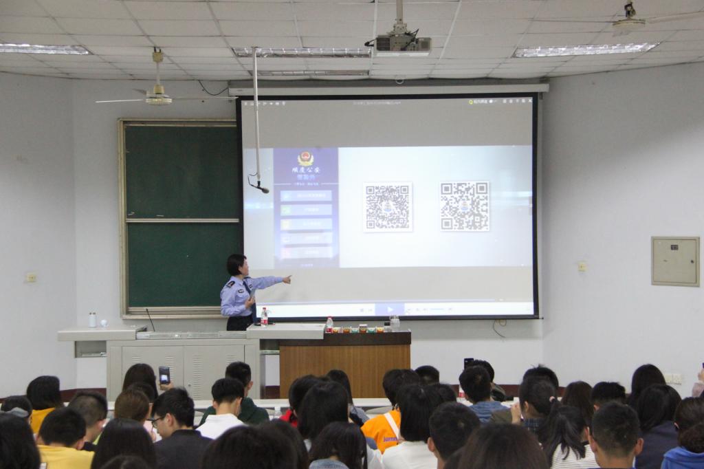 講座開始前,劉紅玫主任通過視頻向現場師生介紹了近兩年來順慶公安分局破獲的重大案件和取得的工作成績,并講解了“順慶公安”微信公眾號的使用方法。她強調,大學生要珍惜青春時光,多學習,多思考,增強安全防范意識,不輕易相信陌生人,避免上當受騙。