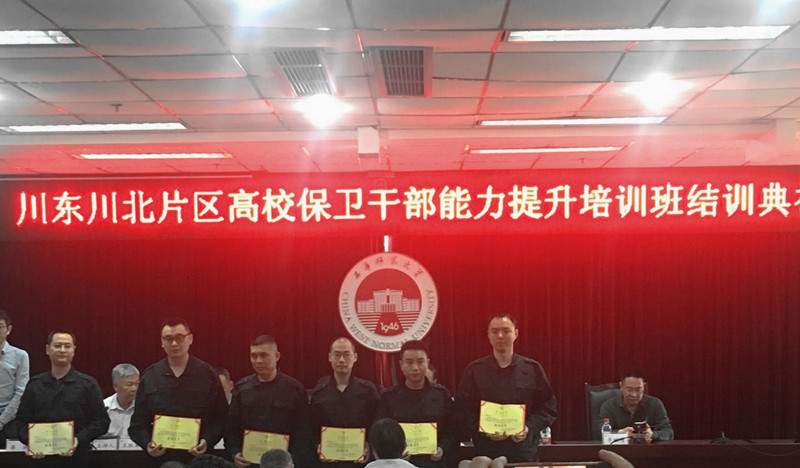 5月10日上午,四川省高教保衛(wèi)學會、消防協(xié)會川東、川北片區(qū)2019年高校保衛(wèi)干部能力提升培訓班結(jié)業(yè)典禮在西華師范大學舉行。四川省公安廳南充戰(zhàn)訓基地、南充市公安局、四川省高教保衛(wèi)學會、消防協(xié)會和川東、川北片區(qū)各高校保衛(wèi)部門負責同志、參訓學員參加結(jié)業(yè)典禮。結(jié)業(yè)典禮由我校南充校區(qū)副校長王勝軍主持。