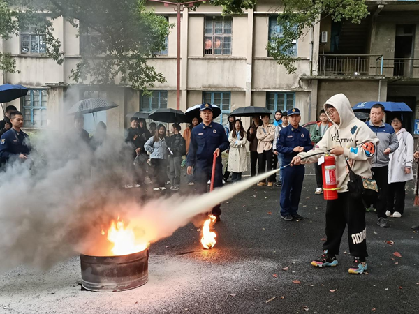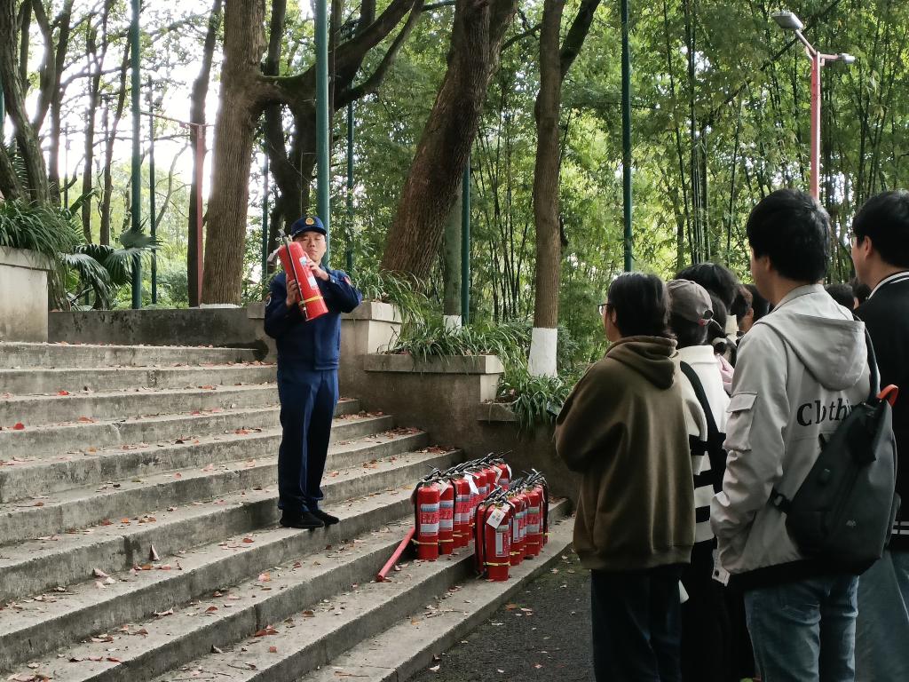 培訓過程中,消防員強調了安全的重要性及火災對人民群眾造成的危害,介紹了生活中容易忽視的火險隱患,強調了寢室消防安全重點注意事項。并以互動的方式普及了滅火器的具體使用方法,在消防員們的指導下,全體參訓人員參與了滅火器實操演練,掌握了滅火器操作使用基本技能。