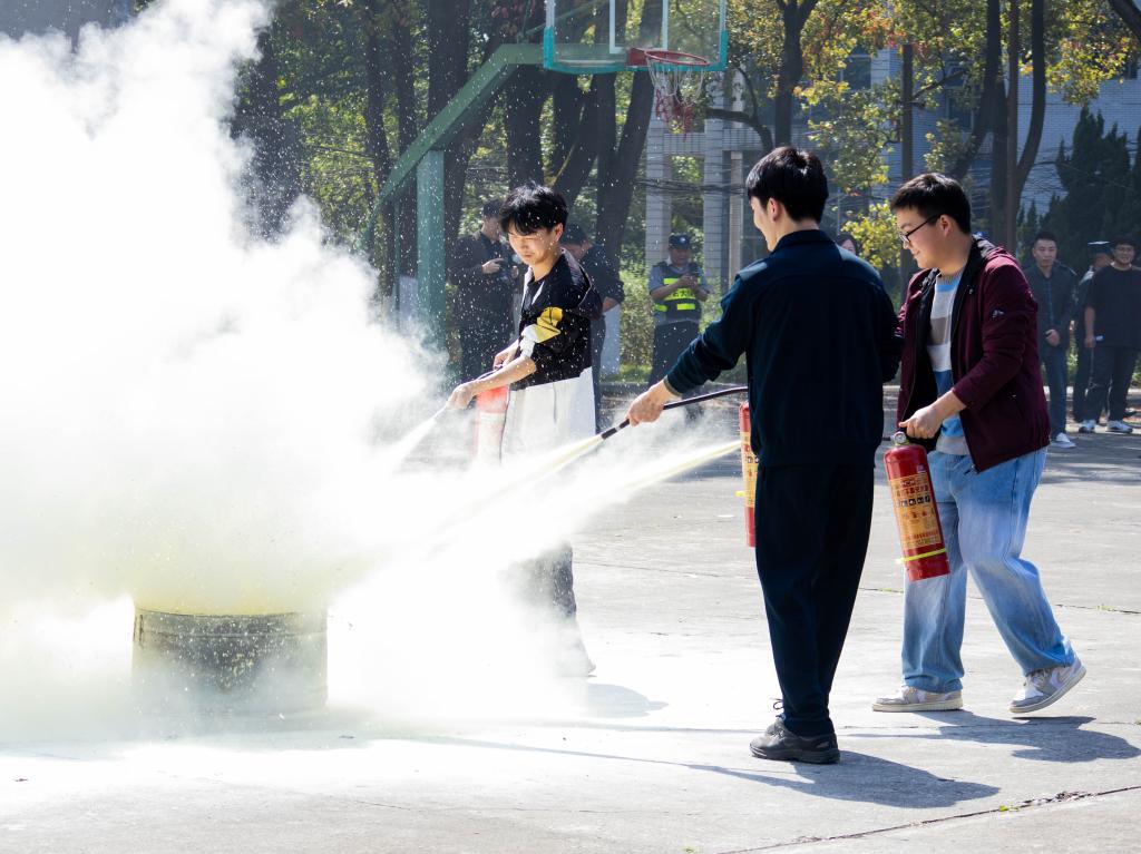 演練結(jié)束后,順慶育英路消防救援站工作人員為所有參演工作人員和學(xué)生代表進行了滅火器實操培訓(xùn)。(李丹陽 大學(xué)生全媒體中心/彭龍 鐘林松 陳信宇 李柯嫻 許交 曹旭東 陳燕 邱天)
