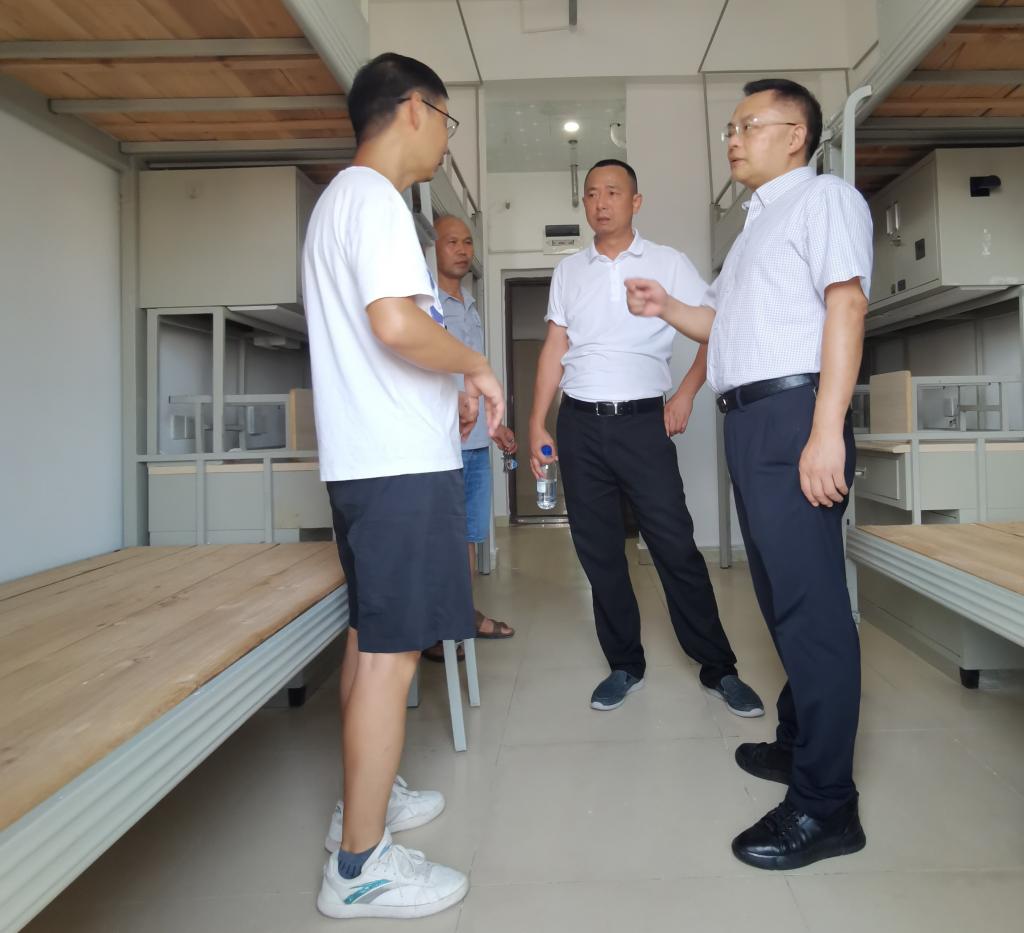 檢查組一行重點檢查了師生食堂、學生電梯公寓、消防控制室等場所,了解了校園安防系統運行情況、新生寢室入住前準備工作和學生公寓新增水泵運行等情況,聽取了相關單位新學期開學前準備工作和迎新準備工作匯報,就進一步做好新學期校園安全穩定及迎新工作提出要求。