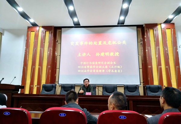 會后,與會人員參加了《突發事件的處置及危機公關》培訓。培訓會上,中國行為研究會副會長、四川省警察學會副主席、四川法學會常務理事孫建明,就他自身專業知識,結合幾十年工作經驗及成功處置的各類突發事件和輿論向導等案例進行了分析及專業培訓。(保衛部 周帥)