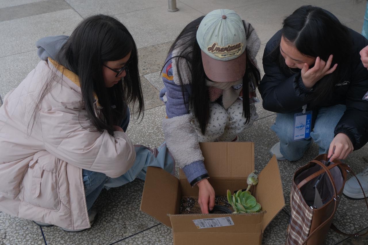 本次活動涵蓋書寫環保思想、分享環保標語及尋花領多肉盆栽等環節。活動中,同學們從可持續發展的宏觀理念出發,或借用名言或獨立構思,將自己對于環保的理解和感悟濃縮成一句標語,并將其書寫下來,張貼在協會預備的展示板上。除此之外,同學們還積極向周圍人分享自己的環保標語,并在交流分享中,深化和豐富自身對于環保的理解。值得一提的是,尋花領盆栽環節反響熱烈,活動熱度遠超預期,活動尚未開始,龍井湖畔、柳堤等藏花地點便已人頭攢動,同學們仔細搜尋,不放過任何一個角落。活動開始后,預先準備的10盆多肉盆栽在20分鐘內被領取完畢。