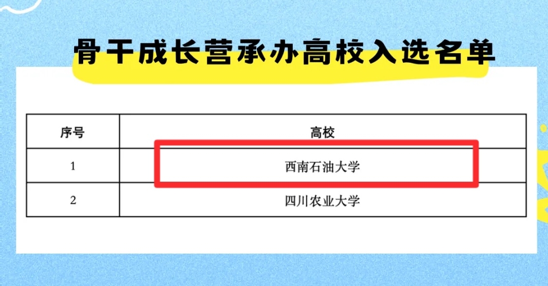 骨干成長營承辦高校入選名單