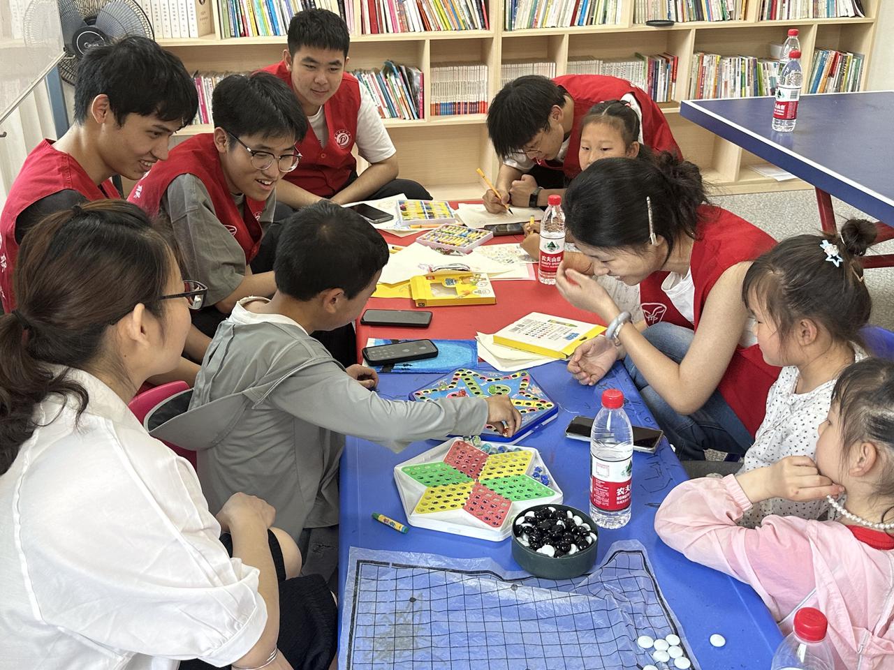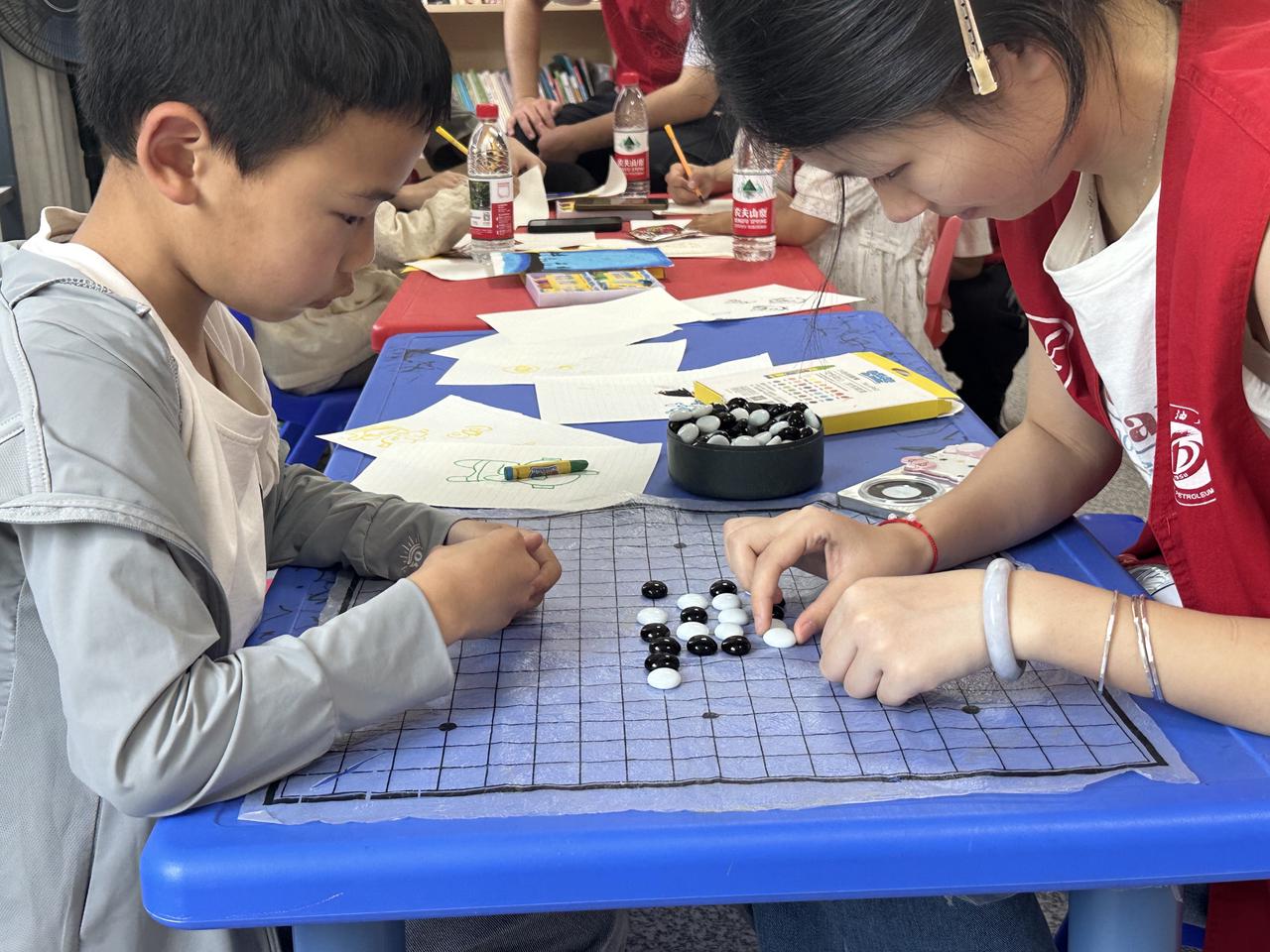志愿者與小朋友玩五子棋