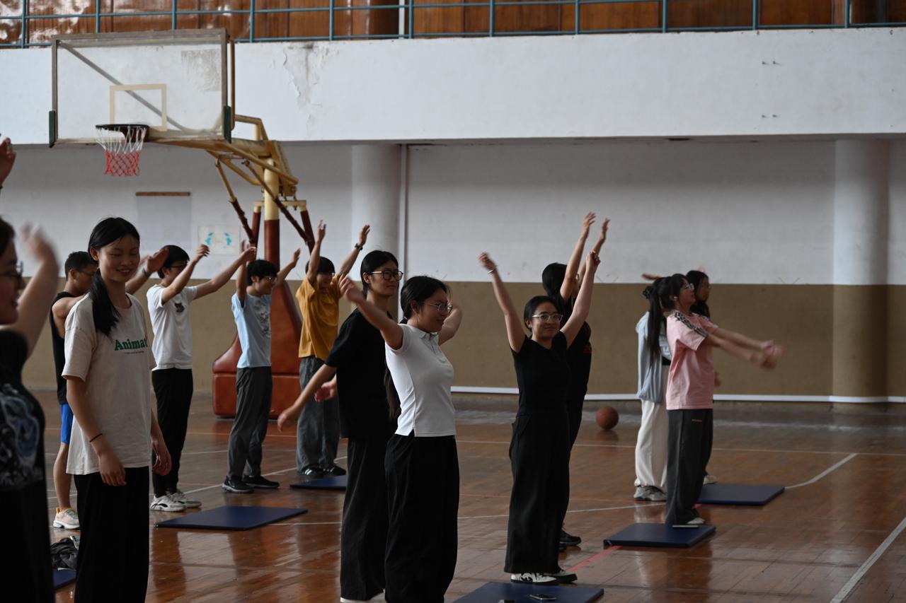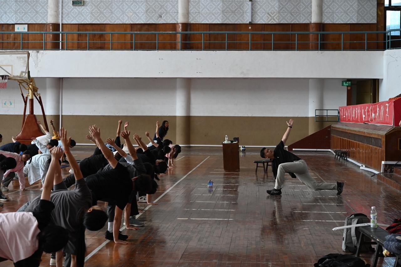 老師帶領學生進行熱身運動