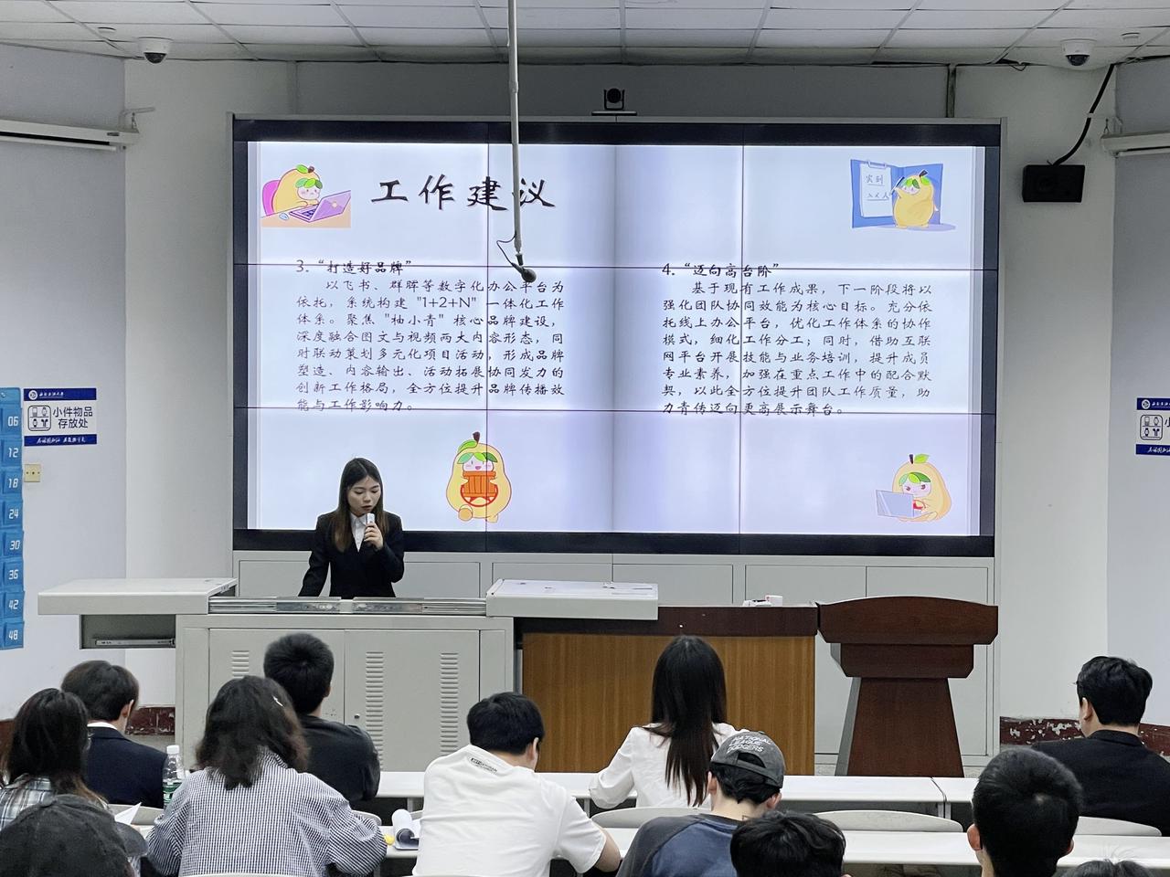 會議伊始,各學生組織負責人立足崗位實踐,系統匯報年度工作成效與思考:團學服務中心主任羅元鎮聚焦服務職能,分享團學體系搭建經驗,促進部門聯動;青年傳媒中心副主任覃方琳立足新媒體矩陣建設,匯報品牌傳播成效,展現宣傳工作創新活力;學生會執行主席韓飛宏以需求為導向,推動訴求落實,挖掘服務新亮點;社團聯合會副主席鄧詩雨講述推進社團規范化管理,助力百花齊放發展格局;青年志愿者協會副會長劉珈利講述品牌項目成果,彰顯青年使命擔當;青年藝體中心副主任周鈺創新文化建設思路,培育藝體人才梯隊;兼職副書記(學生)柳昊系統總結組織協同經驗,分享成長心得,強化思想引領。