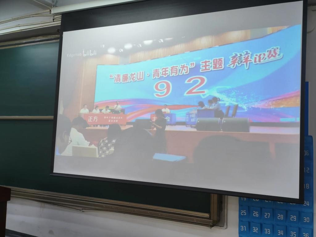 活動以觀看“青年龍山”辯論決賽視頻為核心環節。決賽視頻中,正反雙方圍繞“自律與他律”展開思辯交鋒,正方從“內因驅動”切入,強調青年干部需以自我約束筑牢思想防線;反方則從“制度保障”入手,通過各種監督案例為論據,論證外部監督對廉潔成長的必要性。現場同學全程專注觀看,學習視頻中職業辯手們的推演邏輯、舉例技巧,深化了同學們對于“廉潔文化”的認識。
